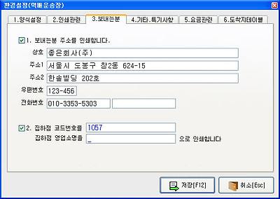아래화면과 같이 택배 관련한 환경설정을 합니다.