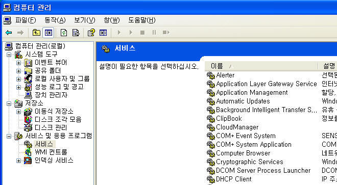 ③ 바탕화면 →내 컴퓨터 → 관리 순서대로 클릭하면 아래와 같은 『 컴퓨터 관리 』
