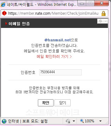 이제 이메일 인증번호를 적습니다. 그리고 확인~!