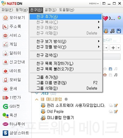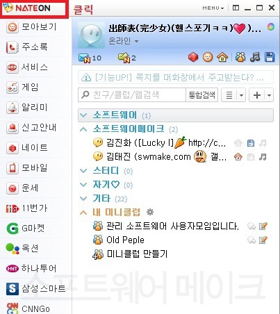현재 프로그램 창 왼쪽 위 부분에 네이트온을 클릭해보세요.