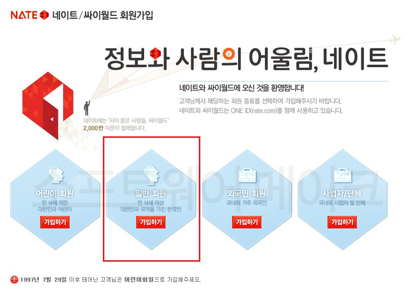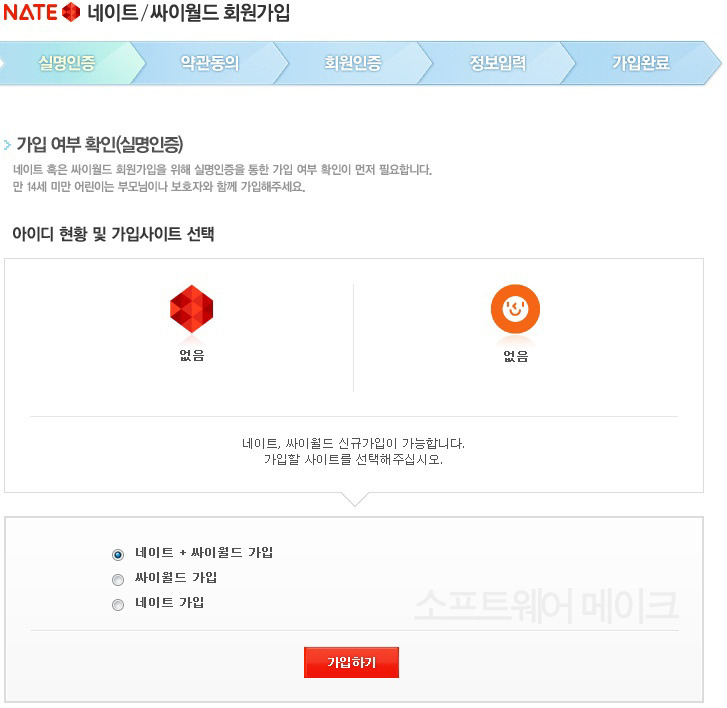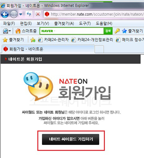 네이트+싸이월드 가입을 클릭하고 가입하기를 눌르겠습니다.