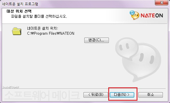 설치할 위치는 보통 변경하시지 않고 다음을 누릅니다.