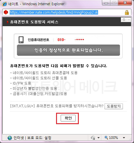 인증번호가 왔습니다. 인증번호를 확인하시면 인증이 정상적으로 완료되었다고 합니다.