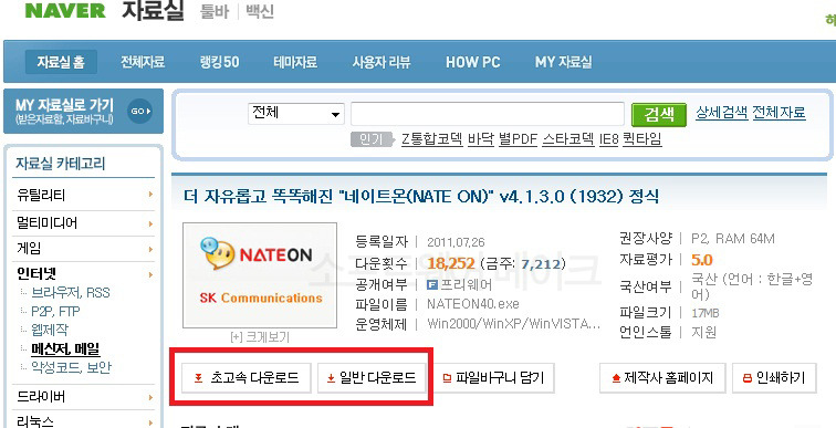 또 다른 방법으로는 네이트온 싸이트에 바로 접속하셔서 직접 다운 받는 방법도 있습니다.