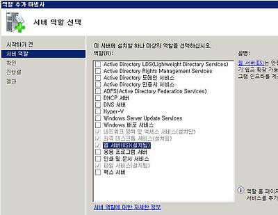 역할추가를 누르면 아래 그림과 같이 역할추가 마법사가 나타납니다.