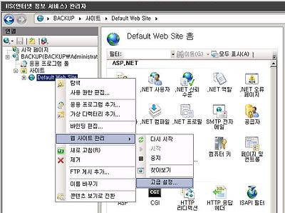 아래 그림과 같이 웹 사이트의 고급설정을 들어갑니다.