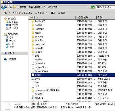 Default.ASP 가 홈페이지의 메인 페이지가 됩니다.