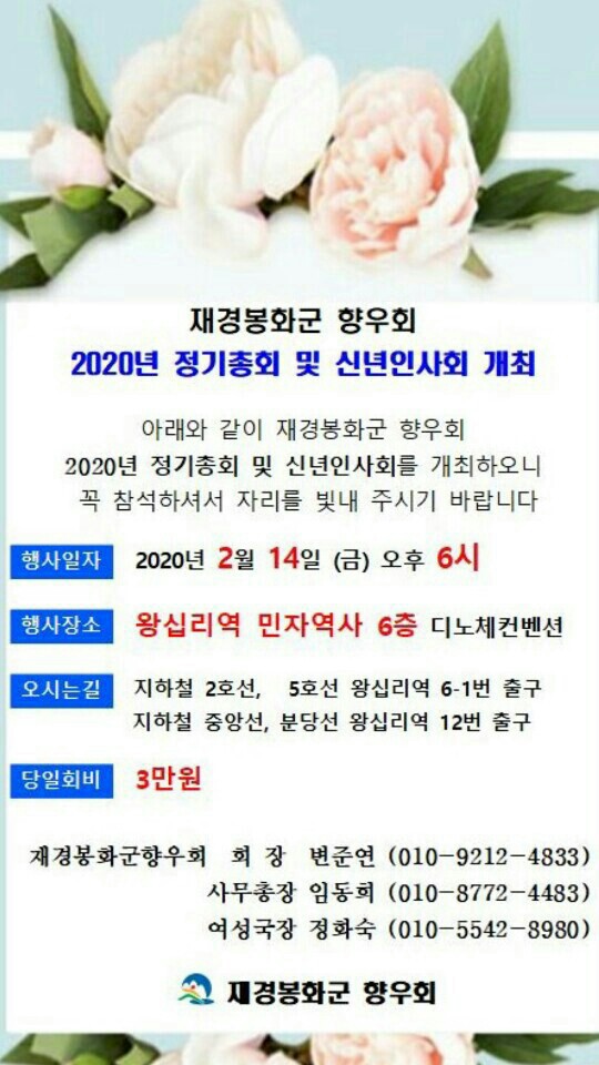2020년 재경 봉화군 향우회 신년회 작성자43회 임성욱|작성시간20.01.21|조회수135 목록 댓글 0 글자크기 작게가 글자크기 크게가 다음검색 현재 게시글 추가 기능 열기 북마크 공유하기 신고 센터로 신고 댓글 댓글 0 댓글쓰기 답글쓰기 댓글 리스트
