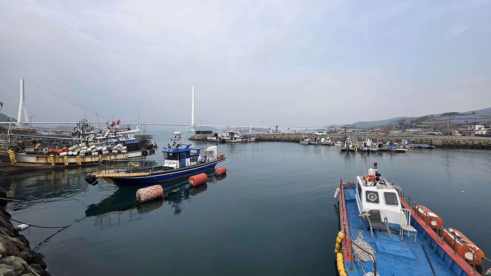 돌산 신기항 옆으로 화태도로 연결되어 있는 화태교가 눈길을 끕니다.