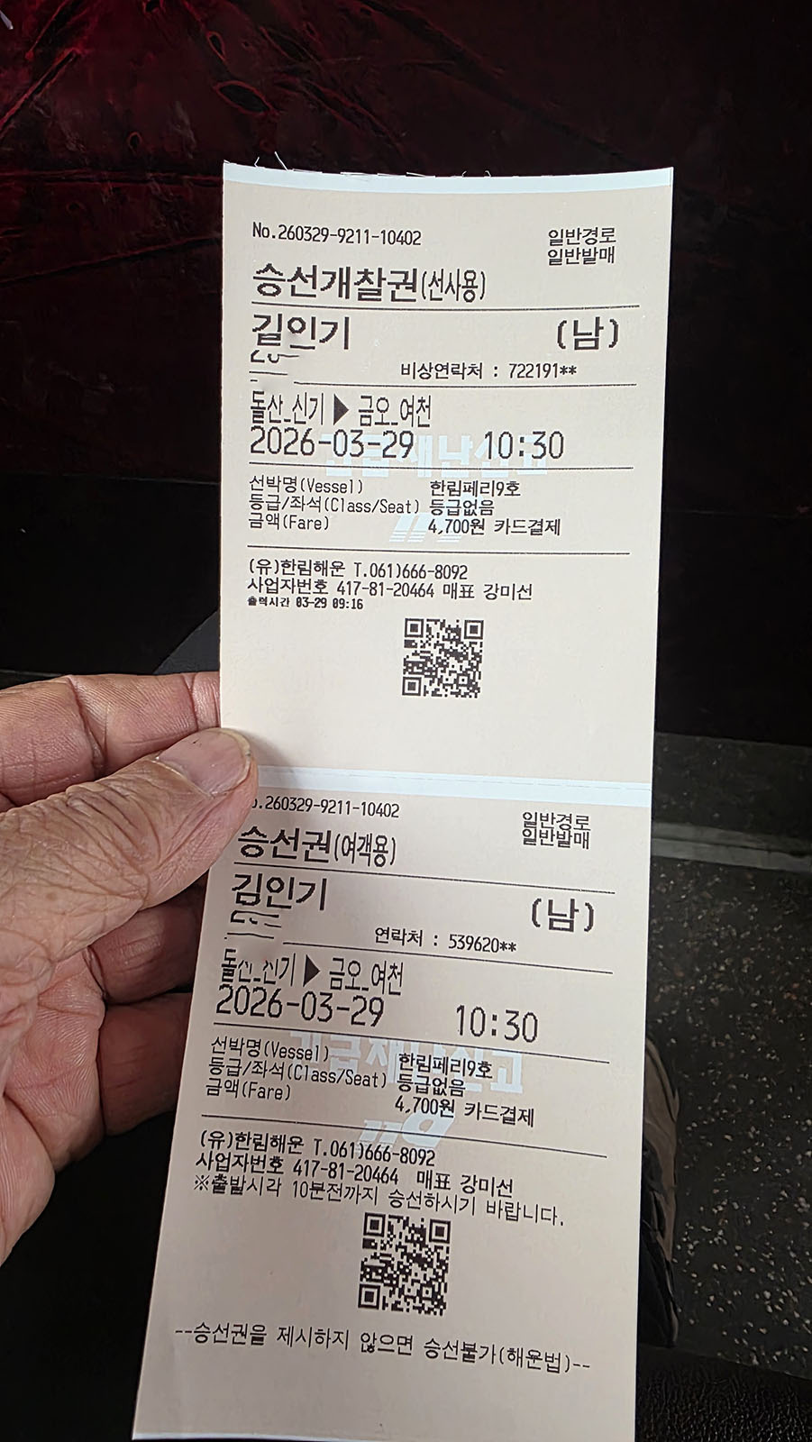 수원에서 새벽4시에 출발해서 5시간을 달려와 10시30분 출항하는 배의 승선권을 받으니 마음이 흐믓하면서도