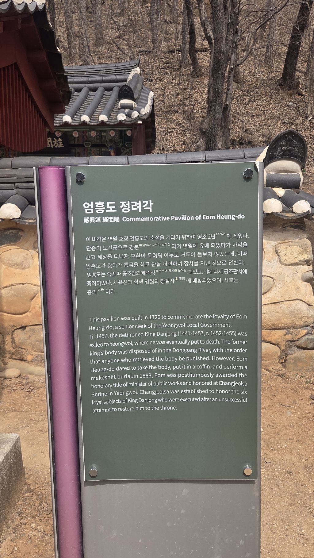 26.03.22단종 유배지 정선 청룡포 단종묘 작성자명산 총무|작성시간26.04.09|조회수21 목록 댓글 0 글자크기 작게가 글자크기 크게가 다음검색 현재 게시글 추가 기능 열기 북마크 공유하기 신고 센터로 신고 댓글 댓글 0 댓글쓰기 댓글 리스트