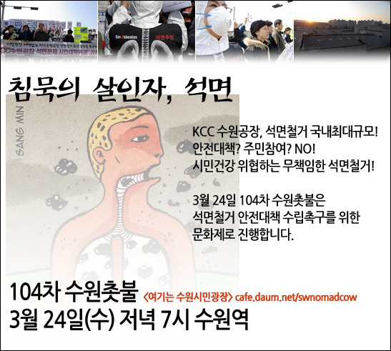 그래서 104차 촛불은 석면대책위와 함께 '석면철거 안전대책 수립촉구를 위한 문화제'로 진행하려고 합니다.