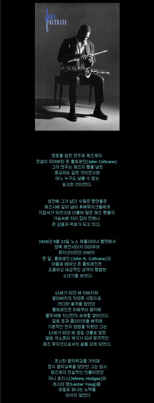 연주인이 없다는 데에도 있지만 존 콜트레인의 연주엔 바로 혁신적인 연주법 이상의 가치를 담고