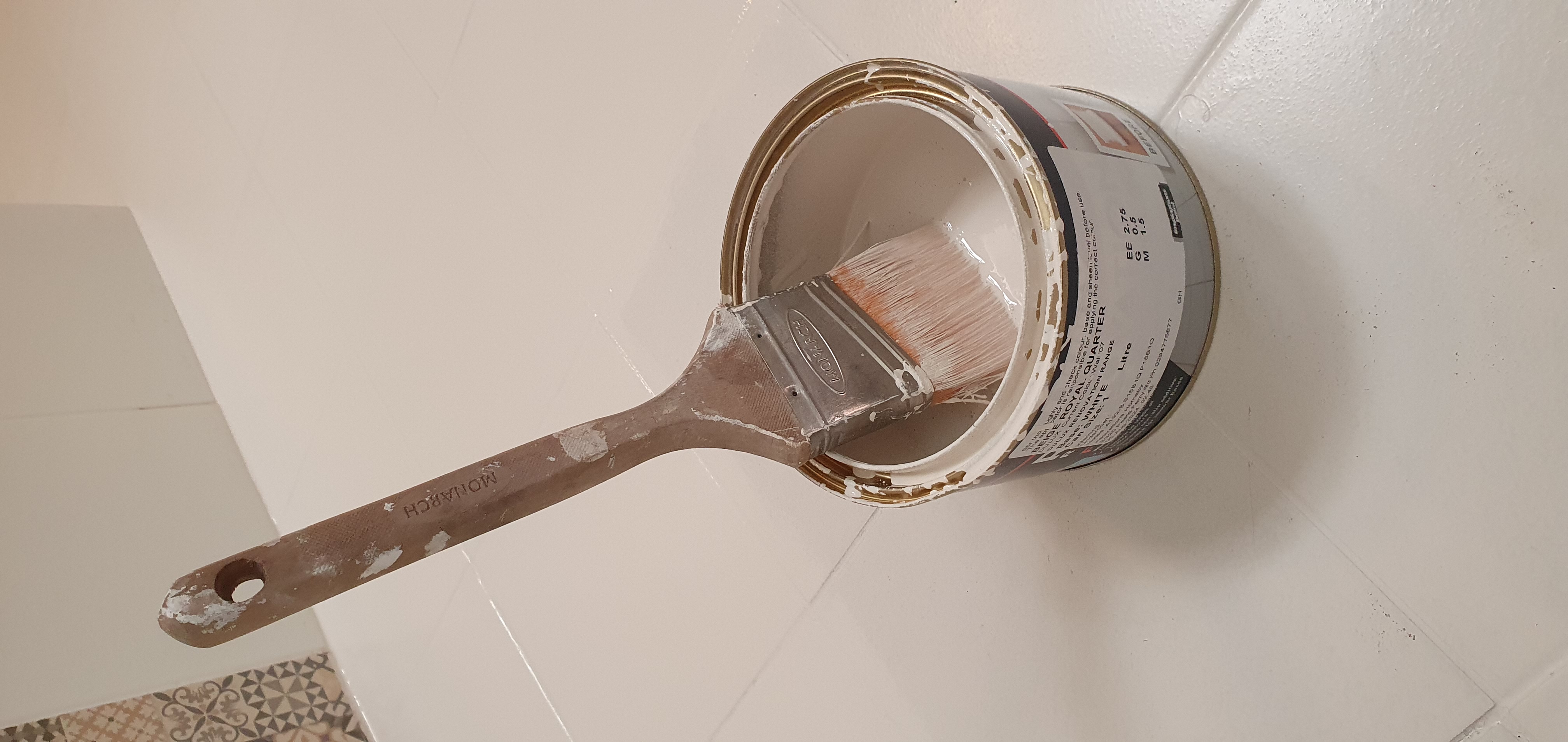 테프를 제거하고 난 뒤에 섬세한 붓으로 목욕탕 코너를 다 바르고 난 뒤에 롤라로