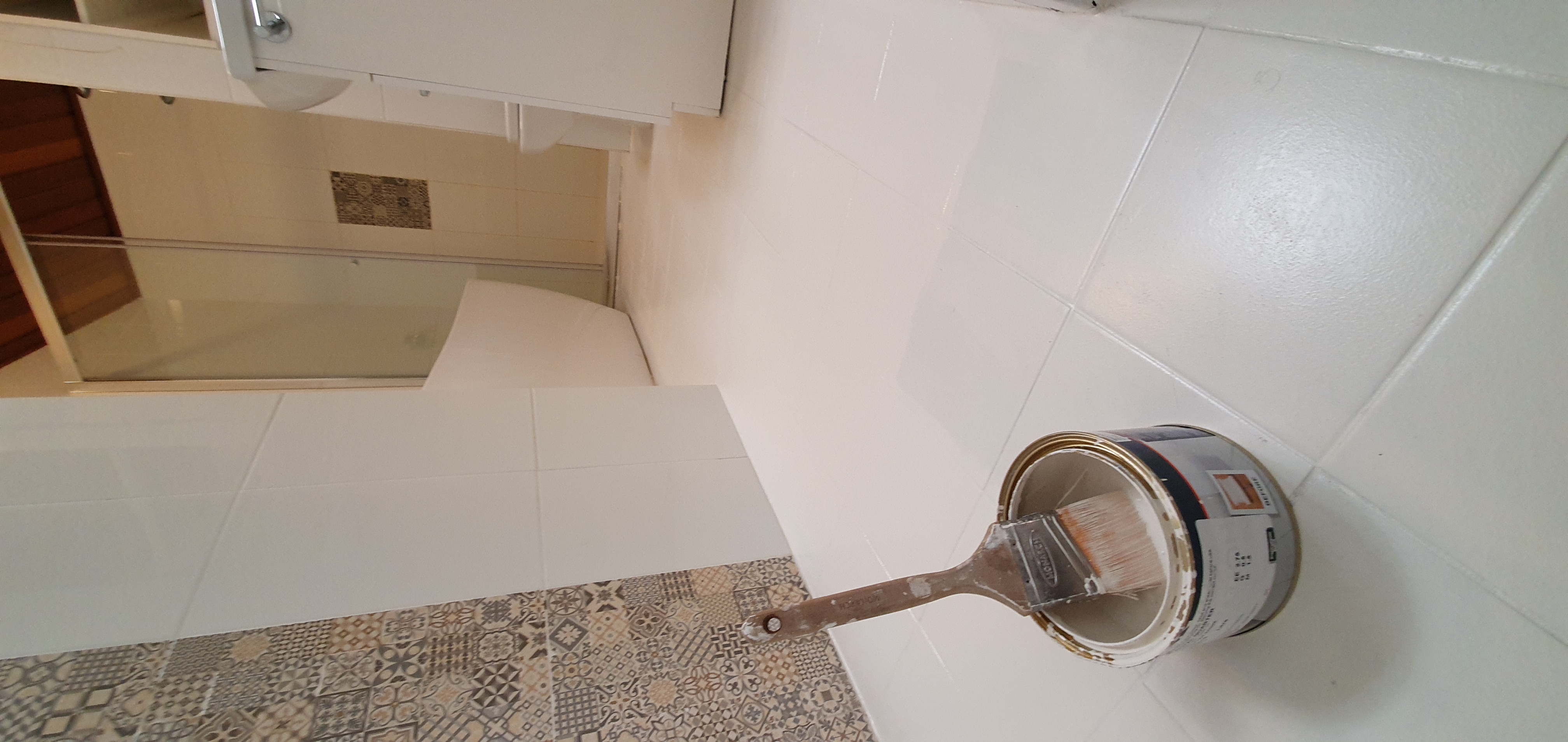 목욕탕 화장실에 타일 칠하기