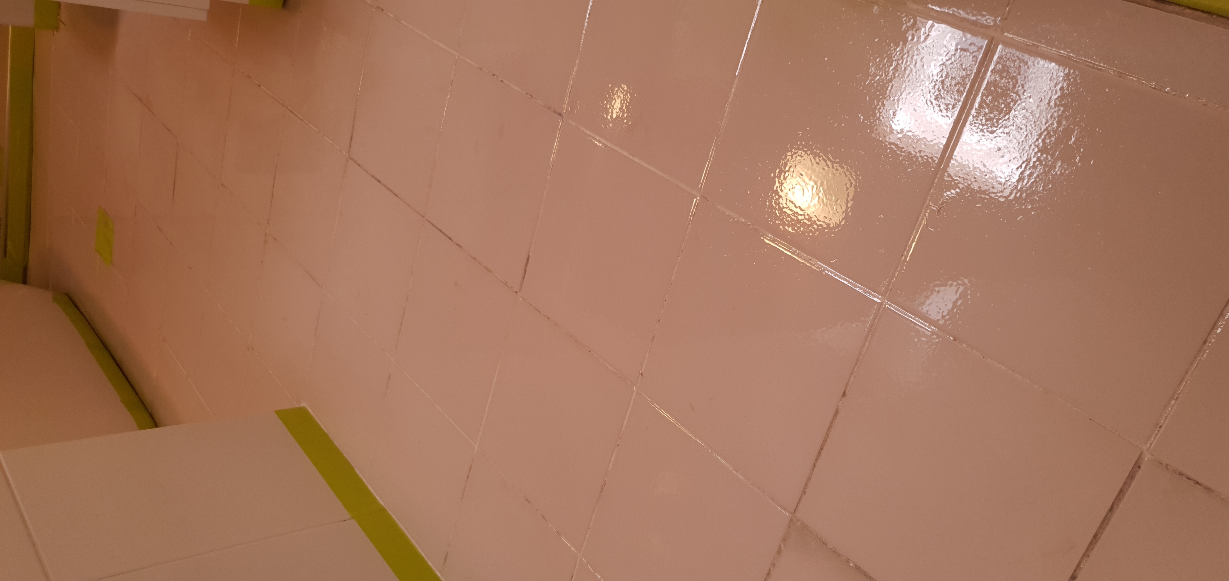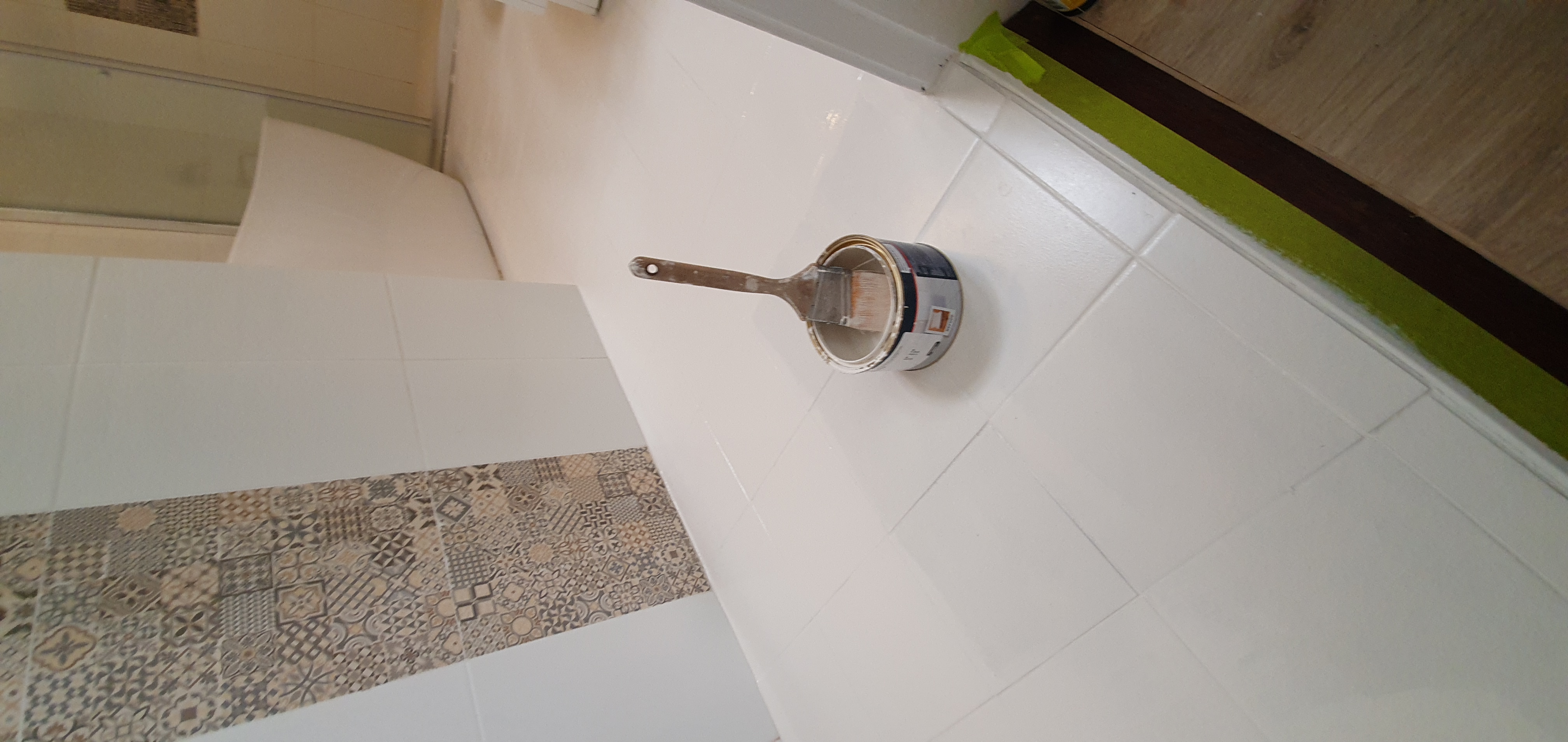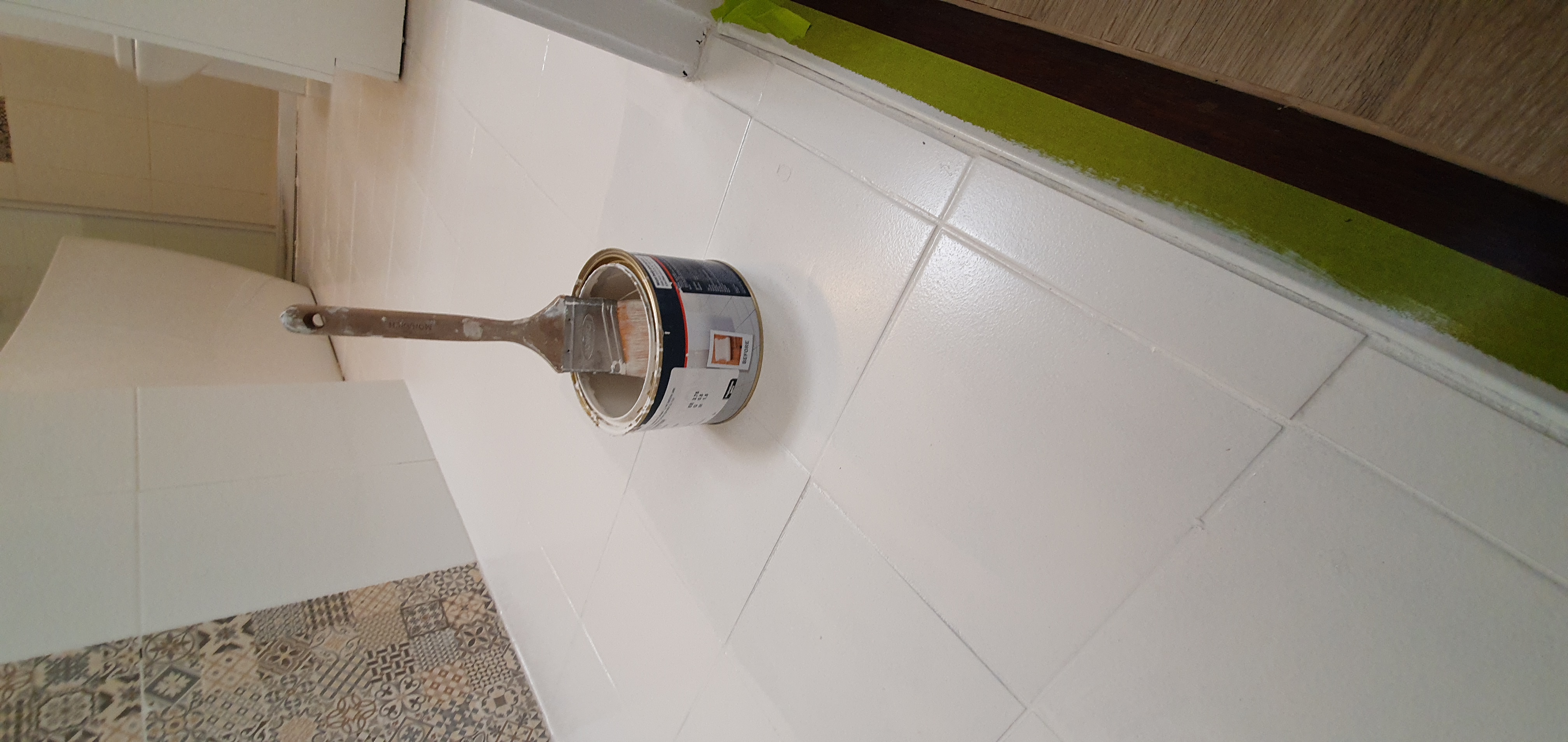 다섯번째, 마지막 타일 페인트를 하기전에 , 마스킹 테프를 다 떼기로