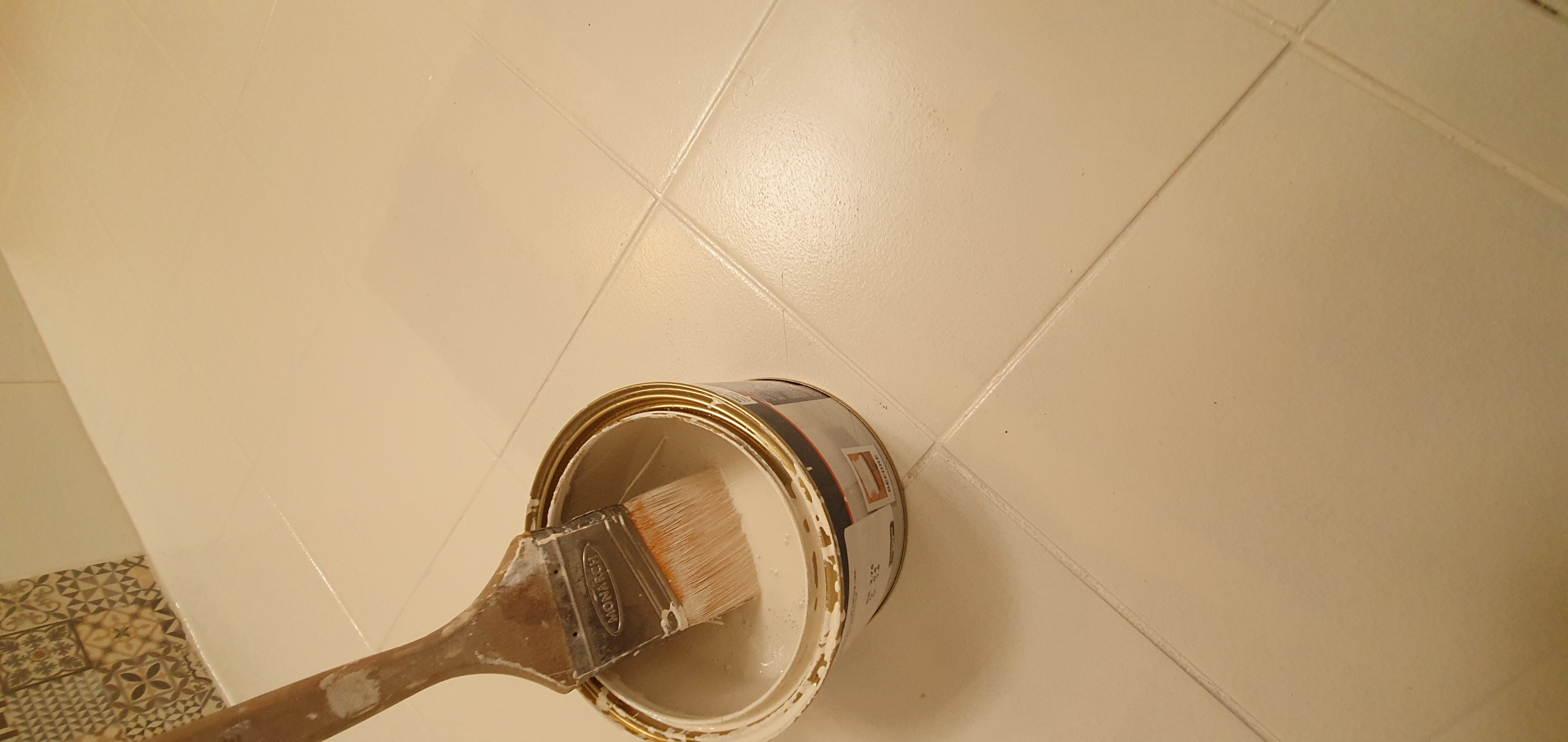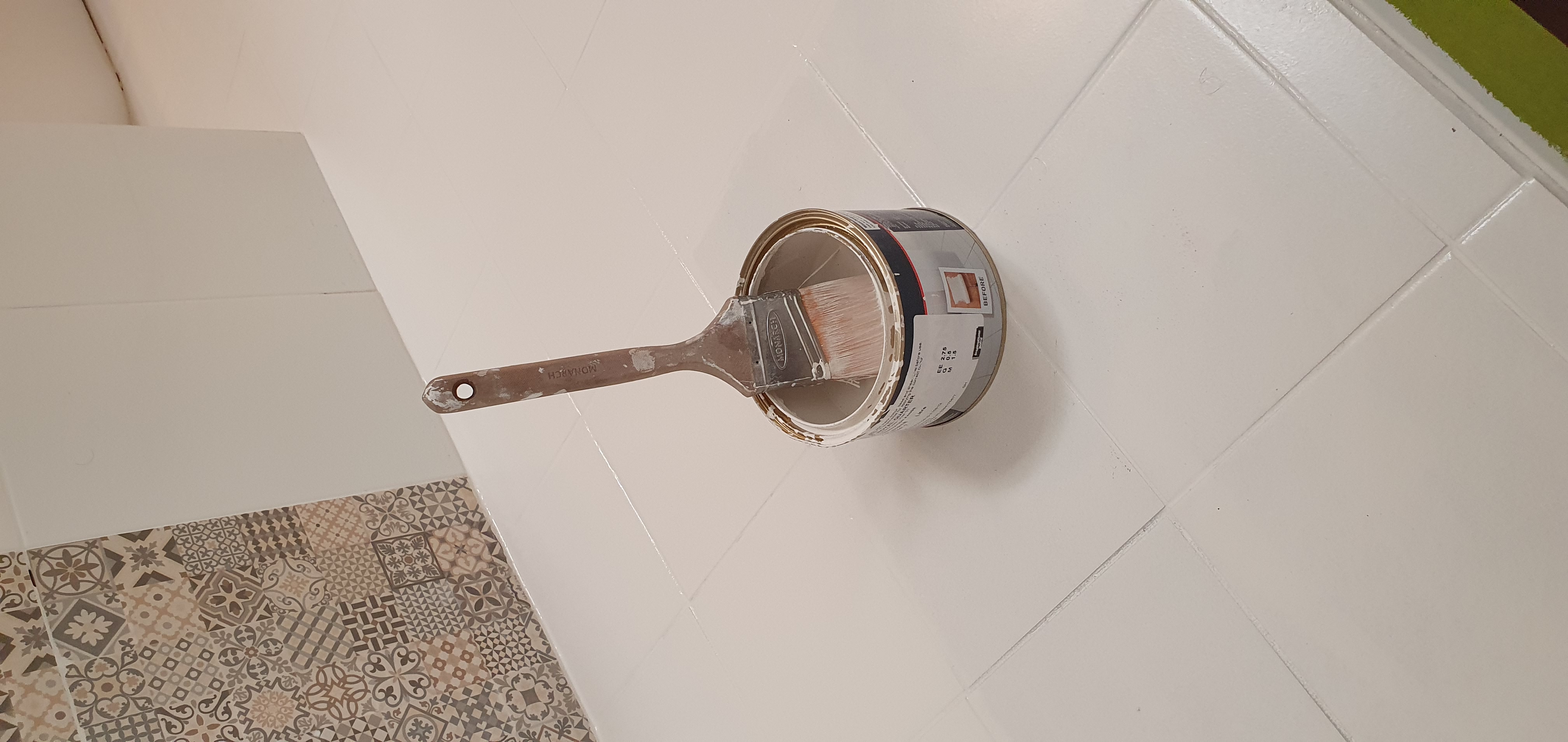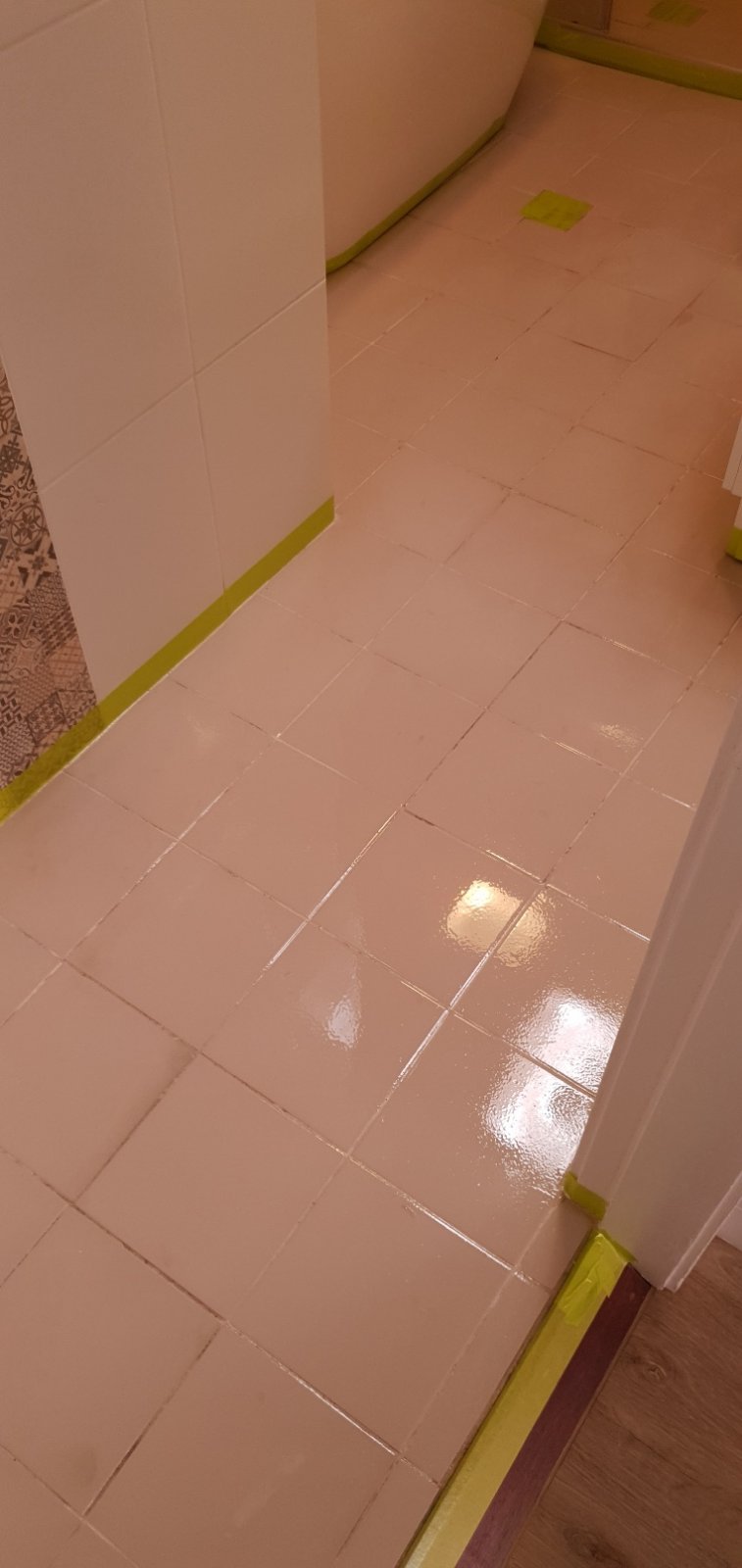 다섯번째, 마지막 타일 페인트를 하기전에 , 마스킹 테프를 다 떼기로