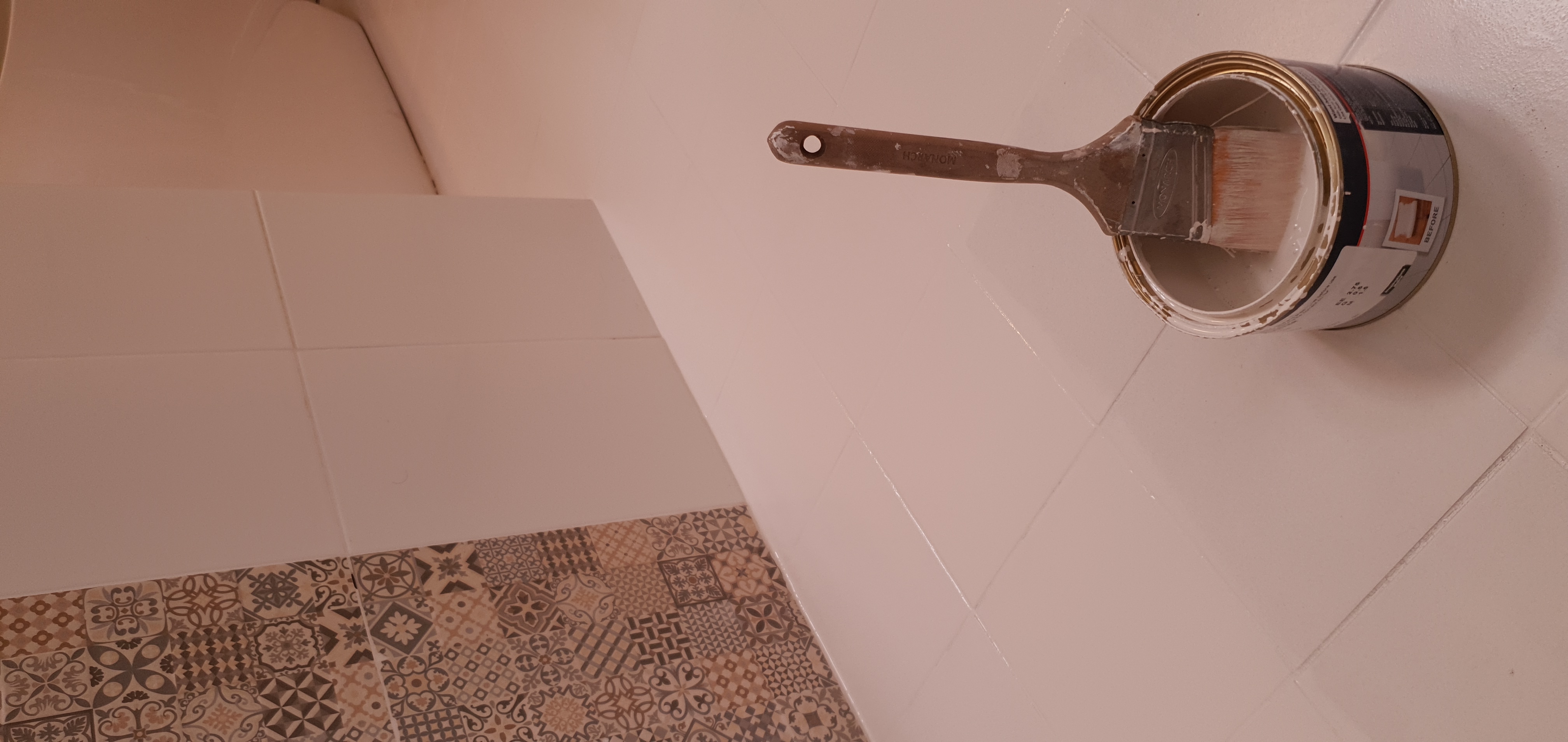 막내가 집에 오래된 목욕탕 타일이 변색되고 촌스러워 보이는 타일을 바꾸어