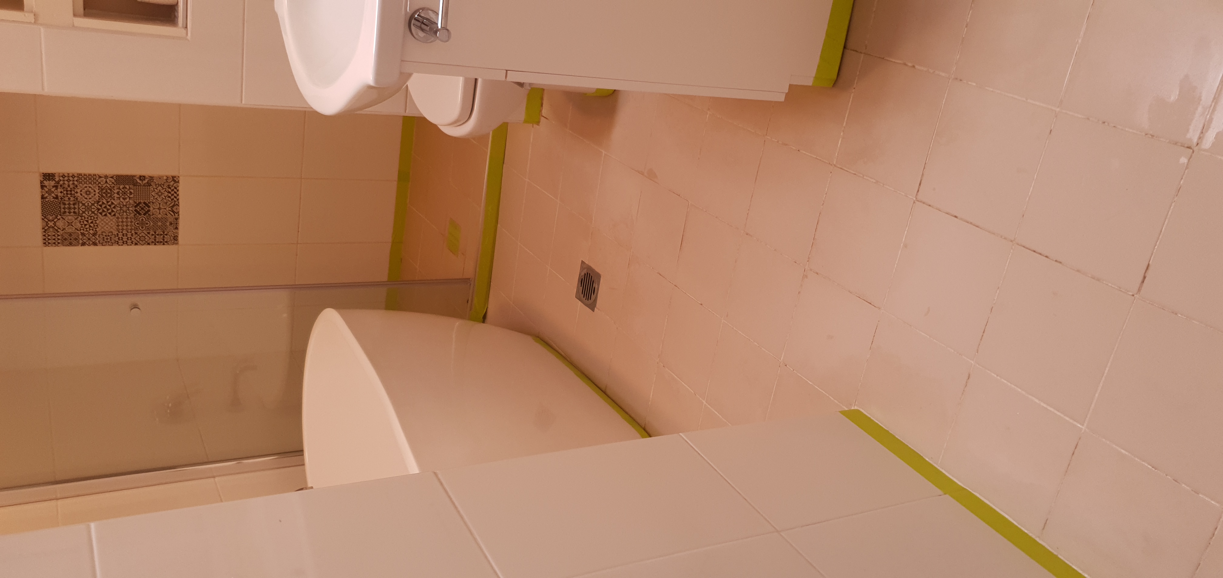 두번째, 목욕탕 바닥 주위를 마스킹테프로 꼼꼼하게 테프를 붙힌다음