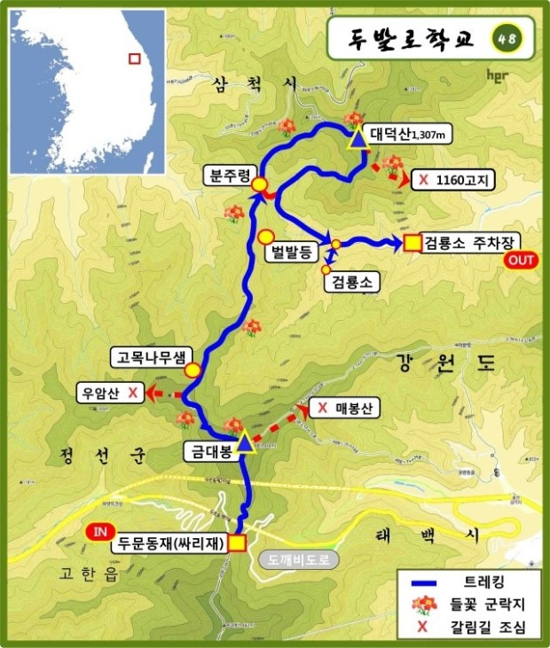 [출처] 천상의 야생화 화원, 금대봉,대덕산 산행, 등산코스 : 두문동재 - 금대봉 - 분주령 - 대덕산 - 검룡소 - 검룡소주차장코스|작성자 트래블야미