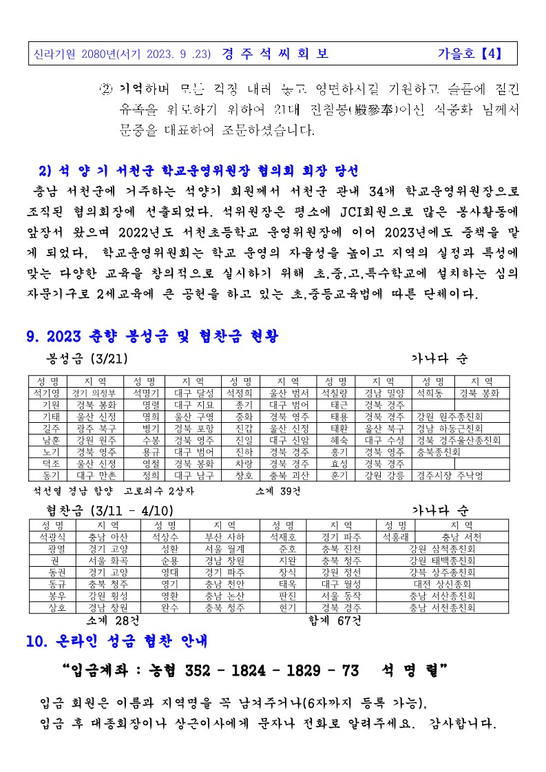 2023년 9월 (4면) 작성자대 종 회|작성시간23.09.20|조회수195 목록 댓글 0 글자크기 작게가 글자크기 크게가 다음검색 현재 게시글 추가 기능 열기 북마크 공유하기 신고 센터로 신고 댓글 댓글 0 댓글쓰기 답글쓰기 댓글 리스트