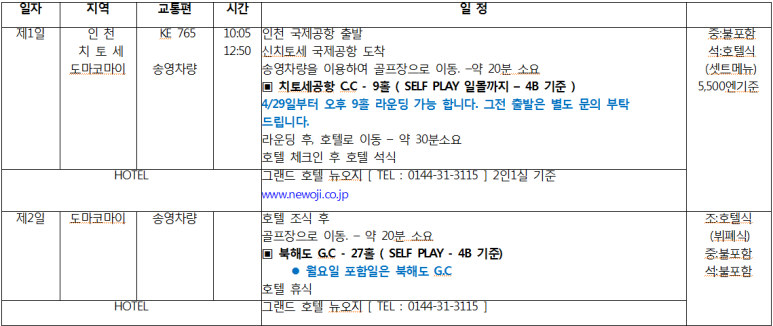 ◆-◆【2024 04월-10월 북해도 도마코마이 뉴오지 3색 3박4일 81홀 골프 투어】◆-◆