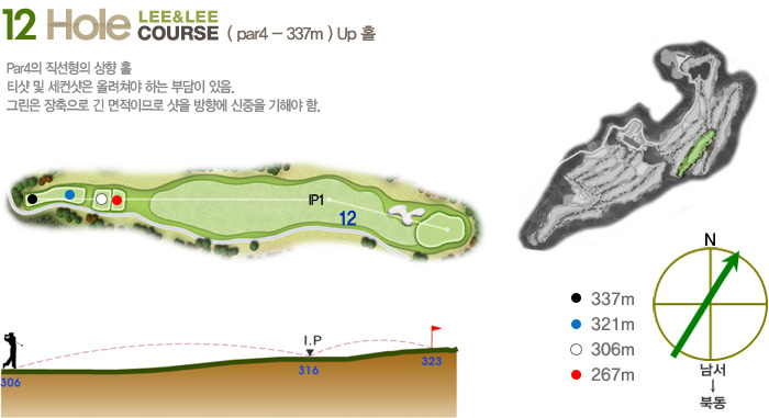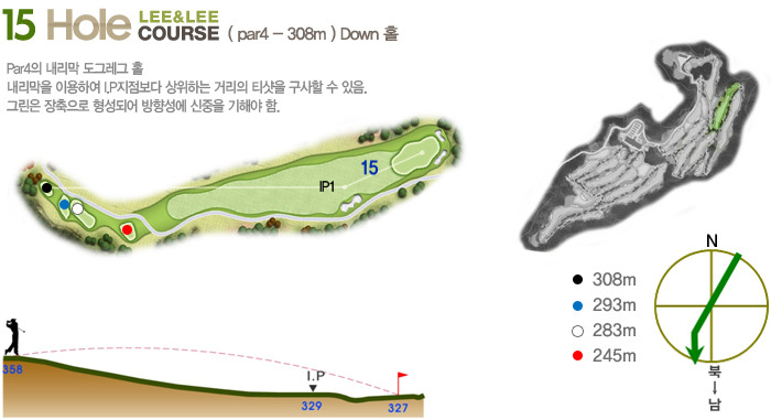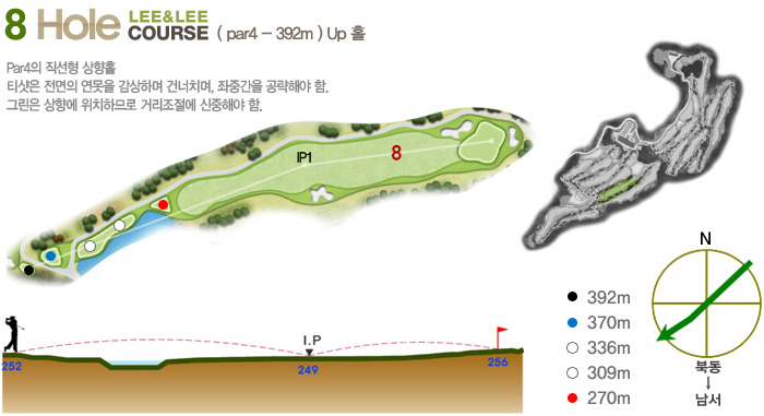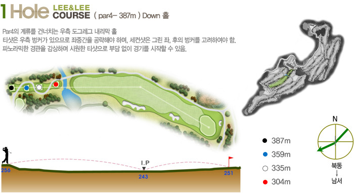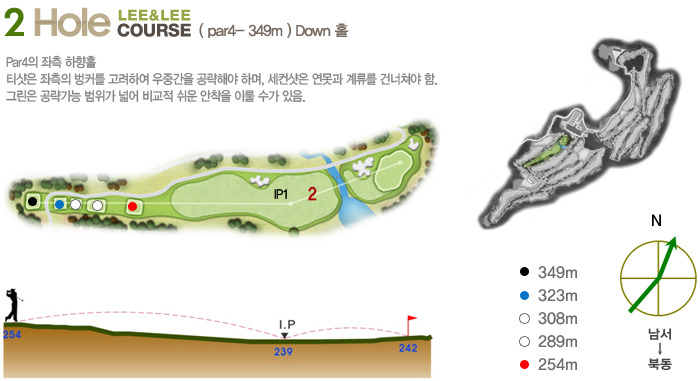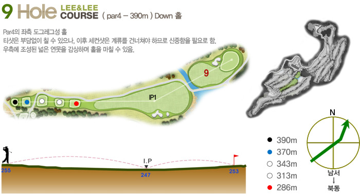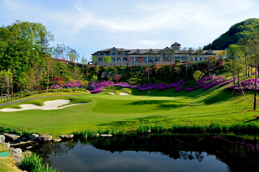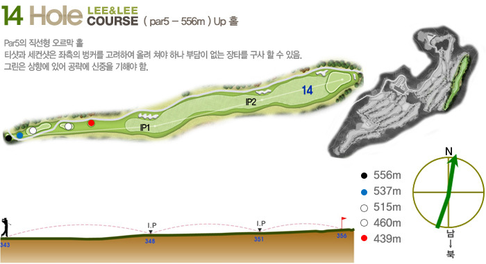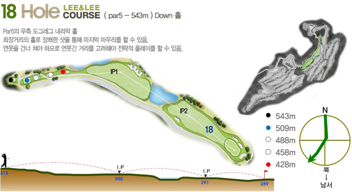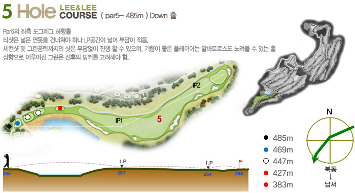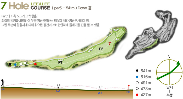 Par5(465m~550m)으로 하였으며 홀 구성의 배치가 뛰어나다는