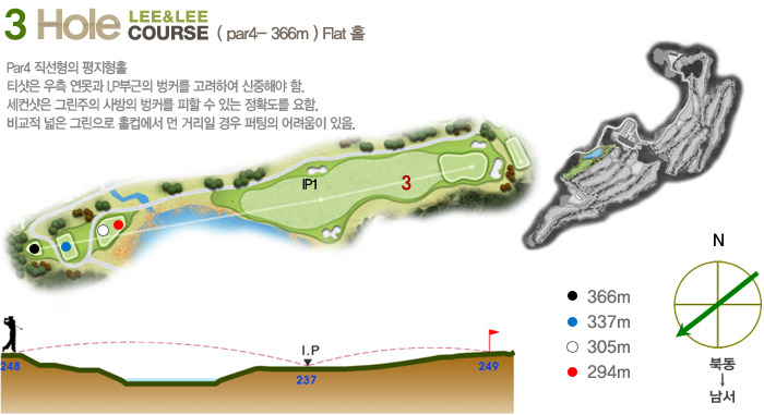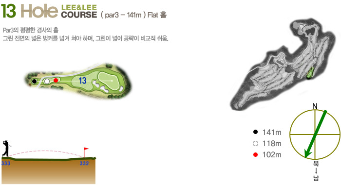 또한 샷밸류를 중요시 하여 Par3 (140m~190m), Par4(295m~380m),