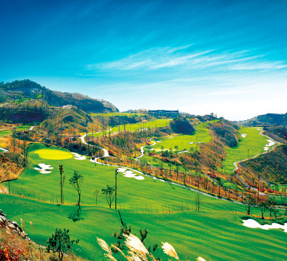 최고 90여m가 넘는 넓은 페어웨이가 오비가 없는 호쾌한 드라이버샷을 가능하게 합니다