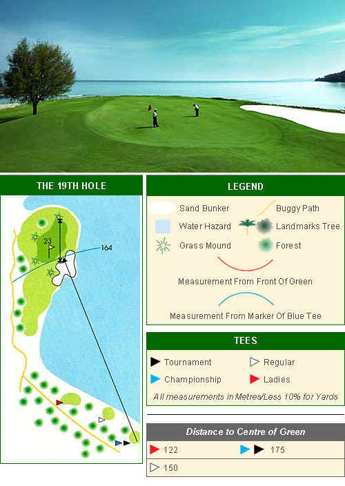 은둔해 있는 듯한 목가풍 골프장이다. 동쪽 바다에는 기기묘묘한 모습의 이국적인 섬(태국 영토라고 한다)