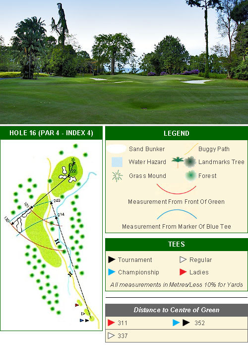 조금만 짧거나 길어도 볼은 안다만해의 짠물 맛을 봐야 한다. 게다가 그린 코앞에는 넓은 벙커까지 파놓았다.