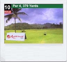 (Par4, 352m)도 오른쪽 으로 휘어진 정글이 있으며 정면으로 는 벙커가 자리