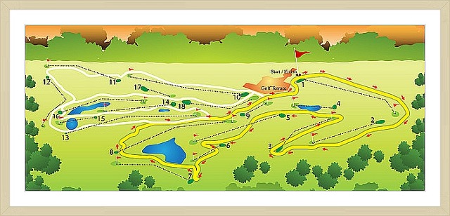 지형과 벙커, 해저드, 개울등이 조화롭게 형성되어 있으며 많은 도전의식을 불러