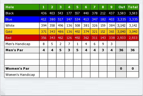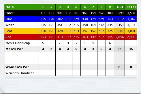 코스는 Par36, 3,598yard로 총 전장이 10.776yard로서 18홀 전장 7,000야드가 넘
