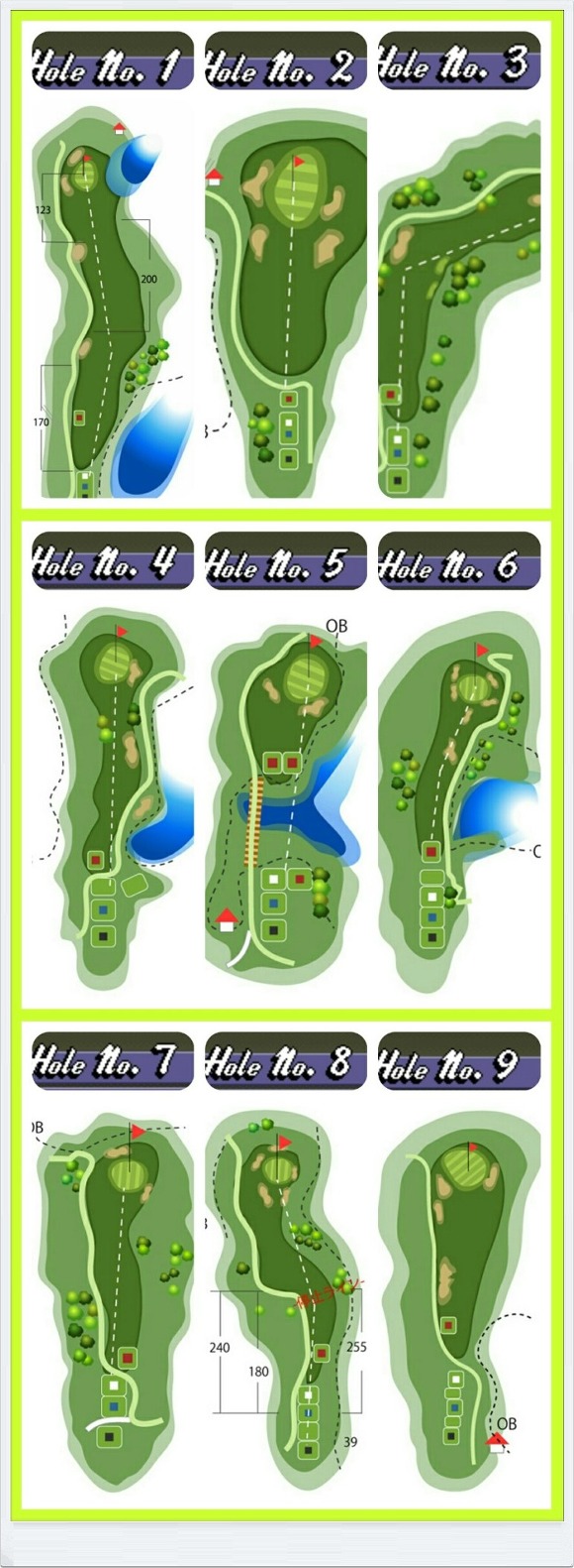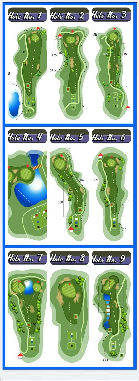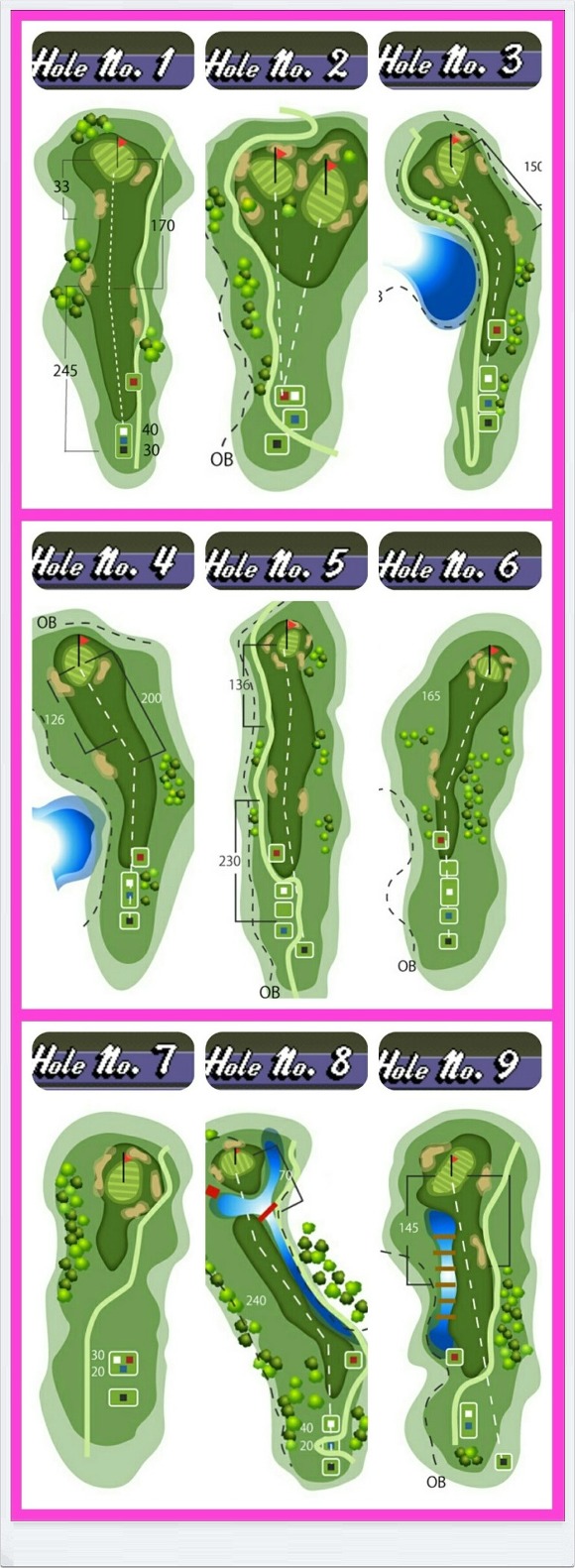 로 구성 되어 있는데 혼마루(本丸, Honmaru)코스 9홀 Par36, 3,595yard 이며 니노
