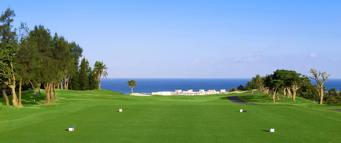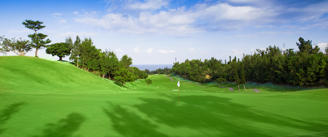 PGM 오키나와 골프장은 에메랄드 그린으로 빛나는 동중국해가 내려다 보이는 구릉지