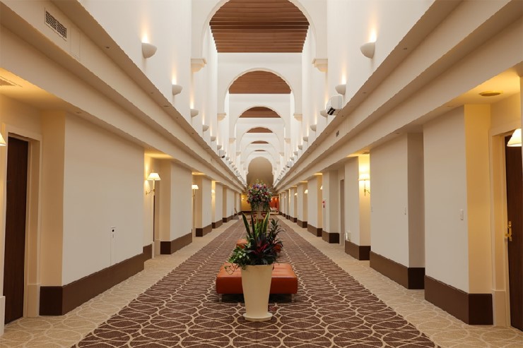PGM 골프 클럽 오키나와는 열대지역을 나타내는 전통양식의 클럽 하우스와 락커룸,