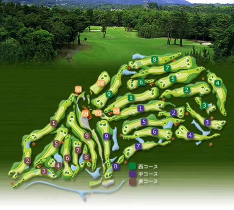 에 스즈카 연봉을 배경으로 09홀 3개의 코스(서,중,동)로 구성되어져 있으며
