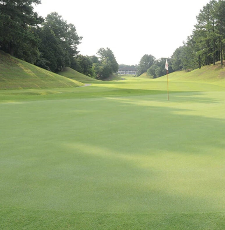 의 그린은 소나무 숲으로 분리되어 있는 명문홀이다.