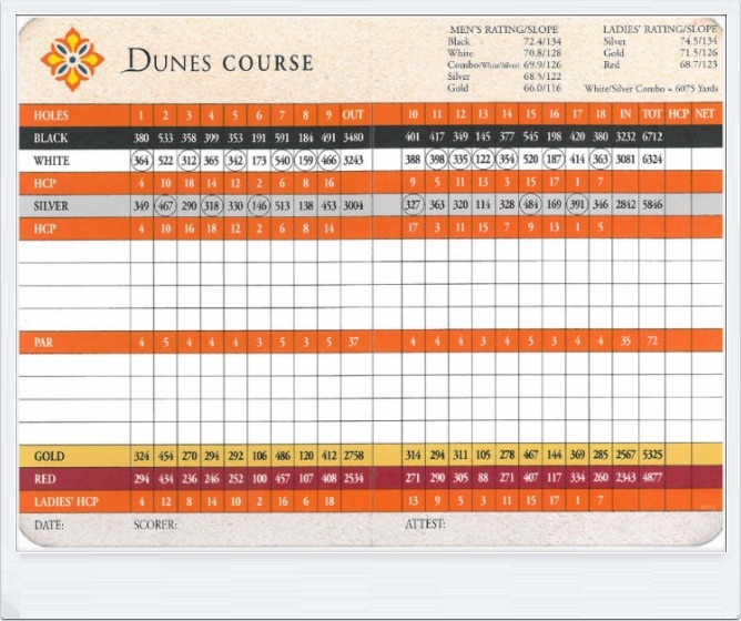 총 7개의 홀로 구성 되어 있다고 하며 특히 듄스 코스 17번홀(Par4, White Tee 414 yard)
