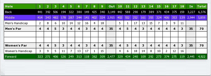 로 6.376yard의 전장을 가지고 있다. 국제 챔피언십 대회를 치루기에는 다
