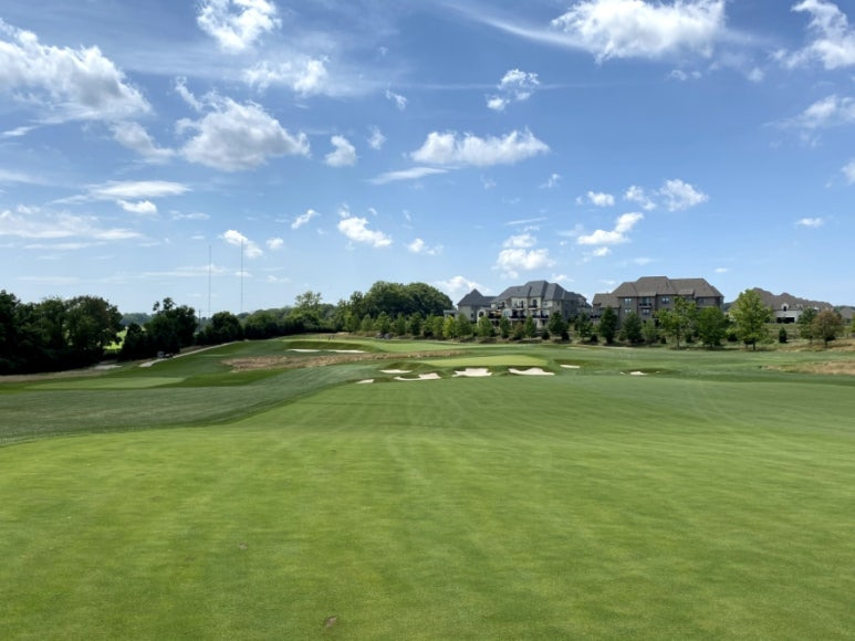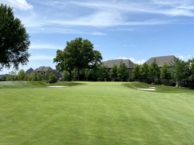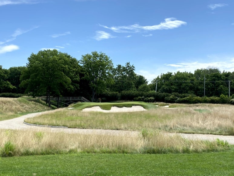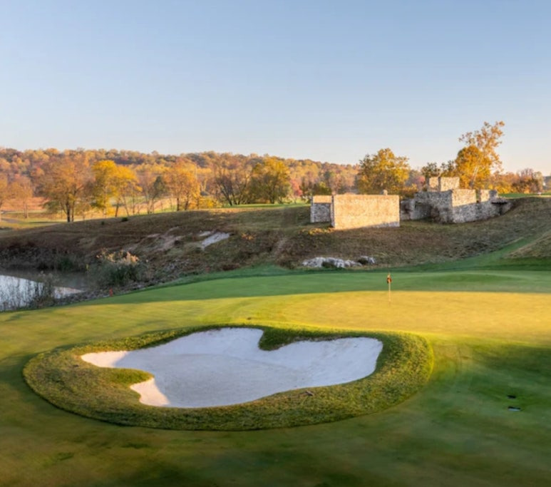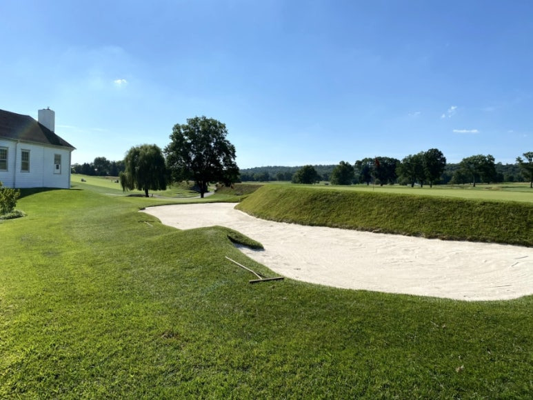 는 벙커와 마운드가 3/4에이커(약 1,000m²)에 걸쳐 티샷 335야드 거리의 페어웨