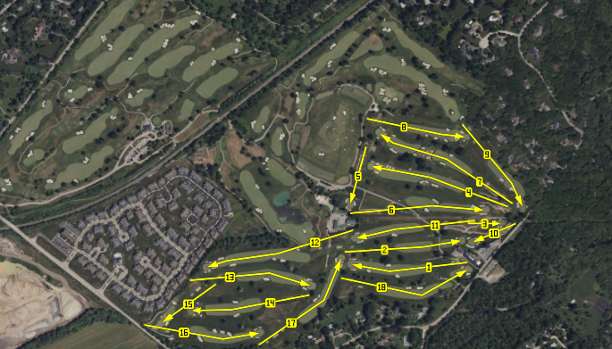 때문에, 연습장 근처 부지 중앙에서 코스를 시작하고 끝내도록 변경했다. 이로써 관