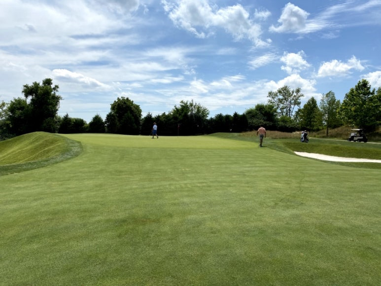 개 시스템도 교체하였고 퍼팅 표면은 짧게 깎인 짧은 잔디가 아닌 빽빽하게 난 러프가 되어 그린 사이드(Green Side) 리커버리(recovery)는 피치(Peach), 범프(bump), 퍼팅(Putting)중 하나를 선택해야 하는 상황이 아니라 로브웨지(Lob Wedge)로만 가능하게 했다.