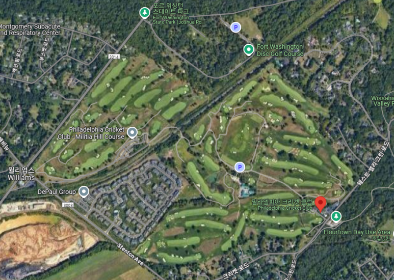 고메리 카운티(Montgomery County) 자치 타운인 화이트마시 타운십( Whitemarsh Township)플라워타운(Flower Town)에 18홀 코스 2곳(위사히콘-Wissahickon)/