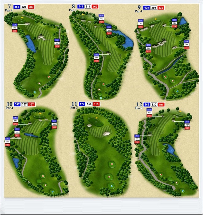 화를 이루는 곳으로 페어웨이 공략과 그린 옆 벙커는 장타보다는 정확성을 요구