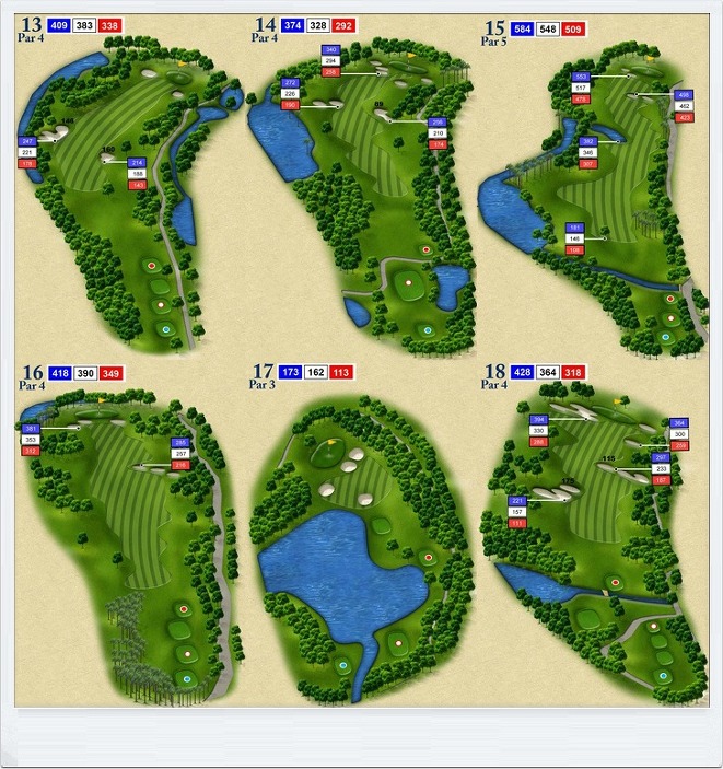 하는 홀이며 13번홀(Par4, 409yard)은 아주 날카로운 오른쪽으로 이어진 도그렉 홀