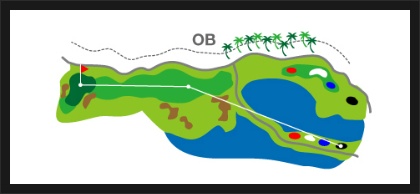<10번홀 A - Lewat Kolam / Over the Pond / Par 4 Blue Tee 396m>