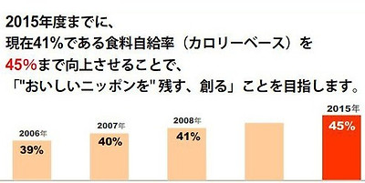 ▲ 식량 자급률 1%올리기 운동, FOOD ACTION NIPPON. 2015년까지 식량 자급률 45% 목표.