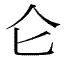 倉 | ![]() 【창】곳집(곡식을 저장하는 창고); 옥사; 푸르다(蒼); 바다(滄); 슬퍼하다(愴) ![]() 8획 (총10획)